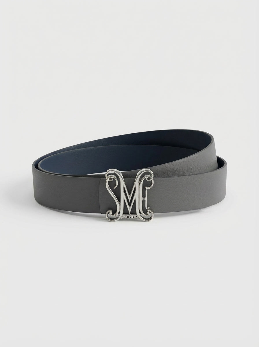 Experience understated luxury with the Atelier Privé Calfskin Belt, a signature accessory crafted for the modern gentleman who values refinement in every detail. Meticulously made in Italy, this reversible belt features premium full-grain calfskin in timeless navy blue and Grey, offering two versatile looks in one elevated design.